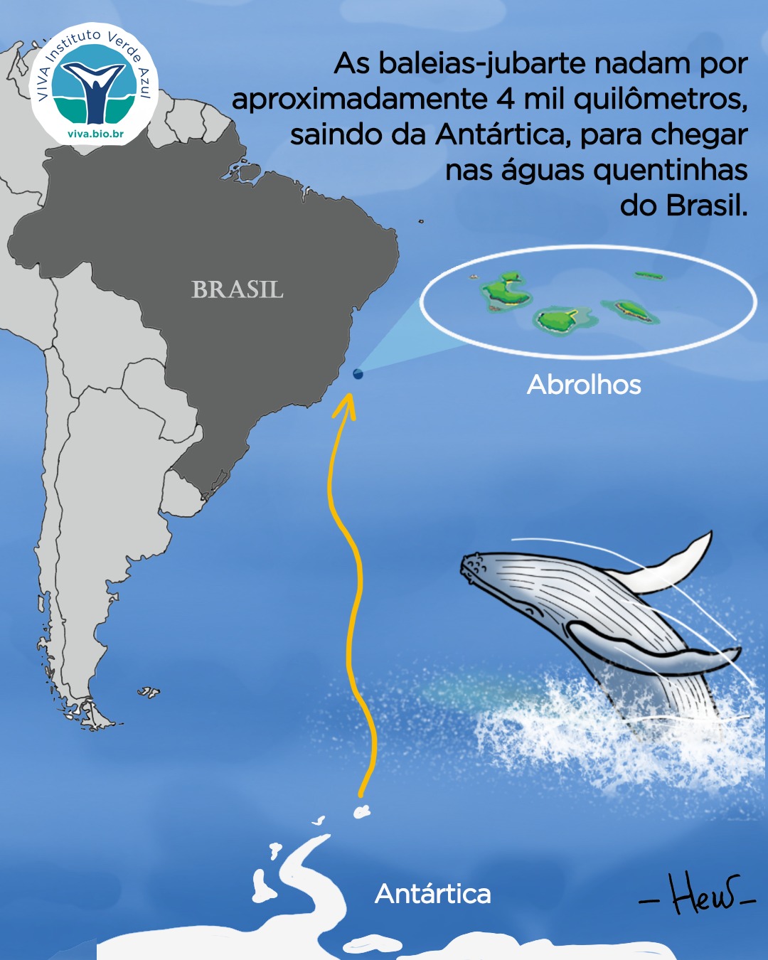 Todos os anos, milhares de baleias-jubarte percorrem longas distâncias em uma impressionante jornada migratória. Durante o outono, inverno e a primavera brasileiras, entre os meses de junho e novembro, essas gigantes dos mares, deixam as águas geladas da Antártica e viajam até as regiões tropicais do Brasil.