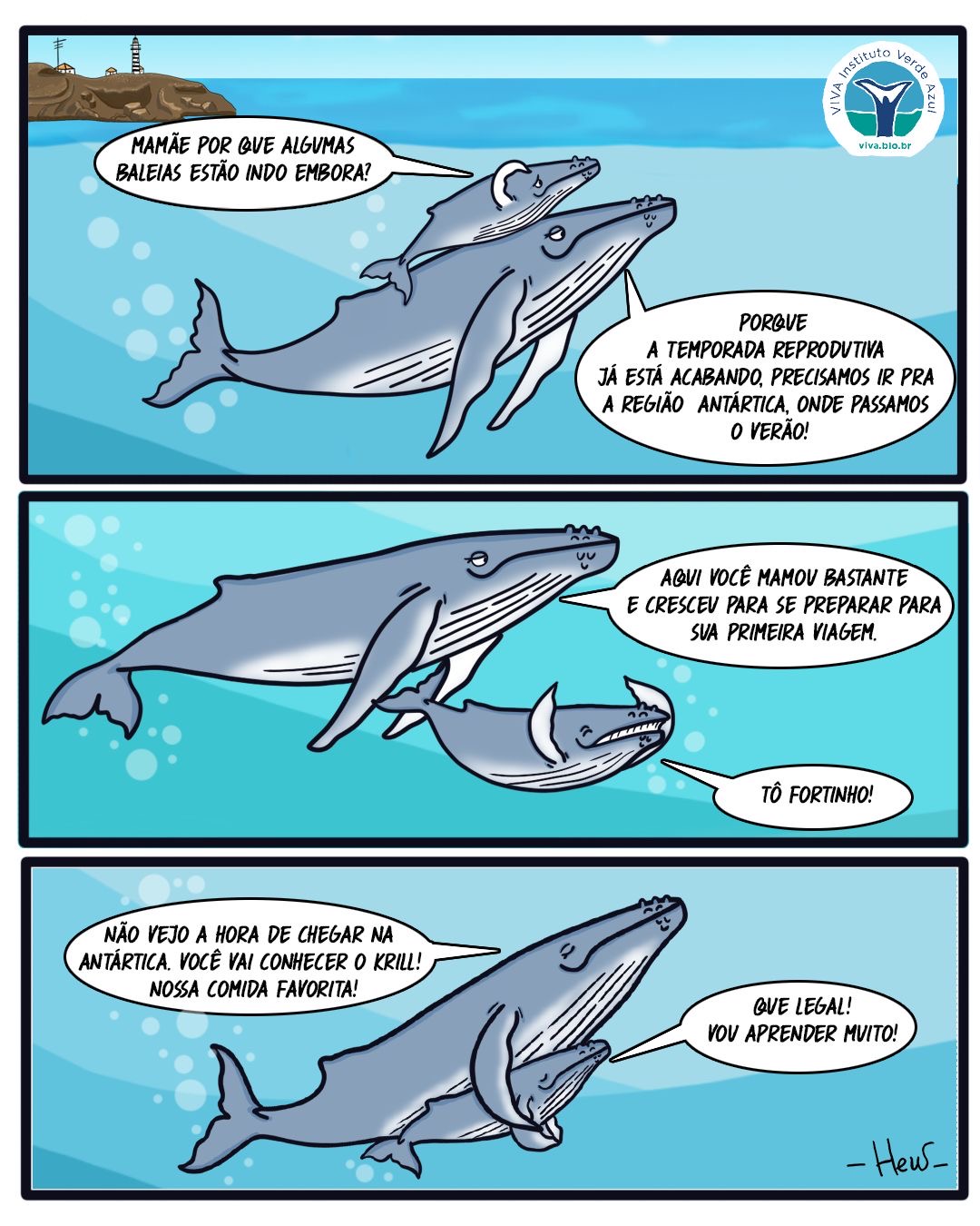 Nesse período do ano, as baleias-jubarte já estão deixando as águas claras e quentinhas da costa brasileira para realizarem a sua migração em direção ao sul.