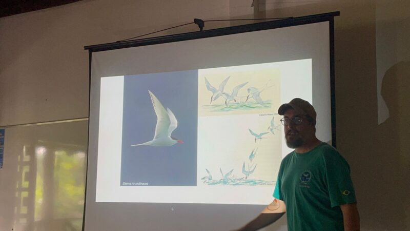 A atividade teve como foco as aves costeiras do litoral paulista, com ênfase nos trinta-réis e nas gaivotas, abordando aspectos ecológicos, comportamentais e os principais métodos de monitoramento aplicados ao grupo, como contagens padronizadas, identificação, observação de comportamento e registro de dados em campo.