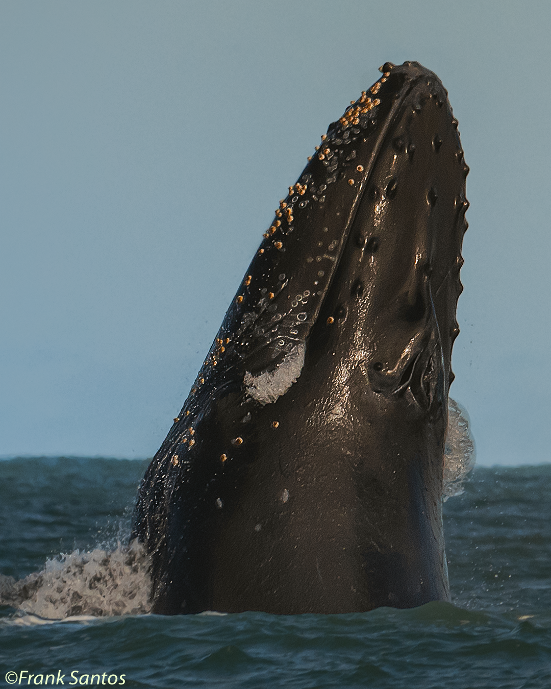 – As Jubartes são conhecidas por serem muito acrobáticas, em seus saltos, expõem cerca de 2/3 de seu corpo