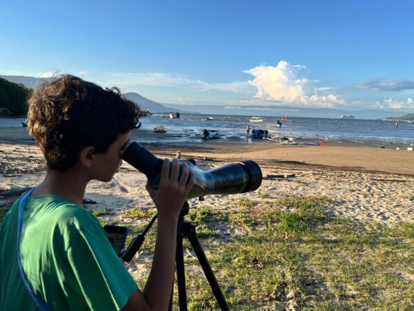 A ação contou com a participação de 19 pessoas, que tiveram a oportunidade de conhecer as aves que habitam o estuário, compreender a metodologia padronizada de contagem e discutir a relevância científica do monitoramento participativo. Durante o encontro, foram realizadas duas contagens de 15 minutos, seguindo o protocolo internacional do GBBC, resultando no registro de 27 espécies e 142 indivíduos (veja os resultados detalhados no Relatório de Viagem no eBird: https://ebird.org/tripreport/476149).