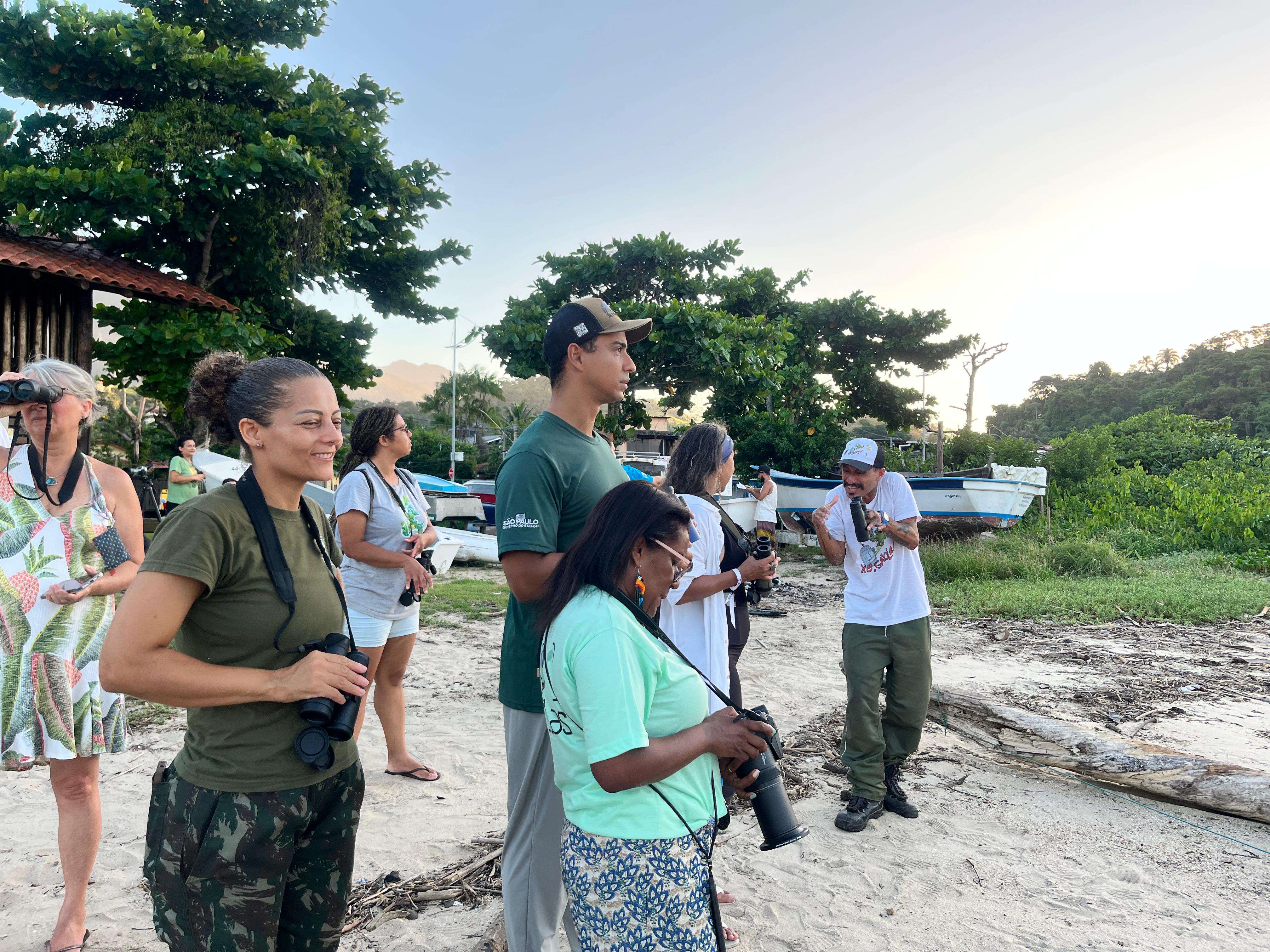 A ação contou com a participação de 19 pessoas, que tiveram a oportunidade de conhecer as aves que habitam o estuário, compreender a metodologia padronizada de contagem e discutir a relevância científica do monitoramento participativo. Durante o encontro, foram realizadas duas contagens de 15 minutos, seguindo o protocolo internacional do GBBC, resultando no registro de 27 espécies e 142 indivíduos (veja os resultados detalhados no Relatório de Viagem no eBird: https://ebird.org/tripreport/476149).