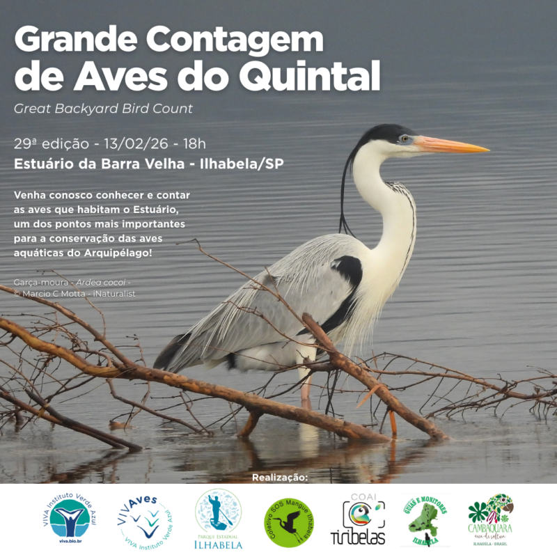 Em Ilhabela, vamos nos reunir no Estuário da Barra Velha para observar as aves que utilizam esse ambiente fundamental para alimentação, descanso e deslocamento.
