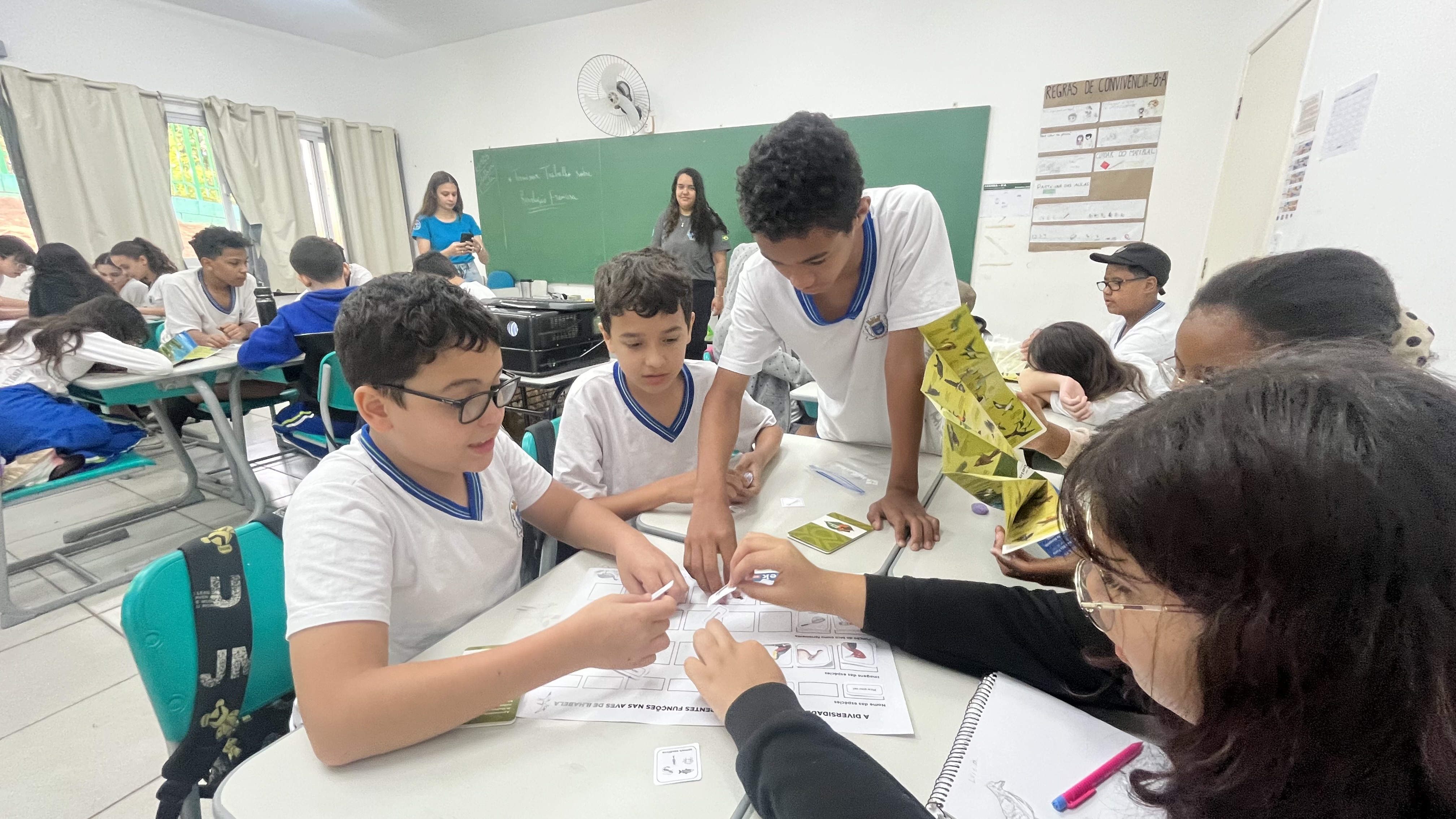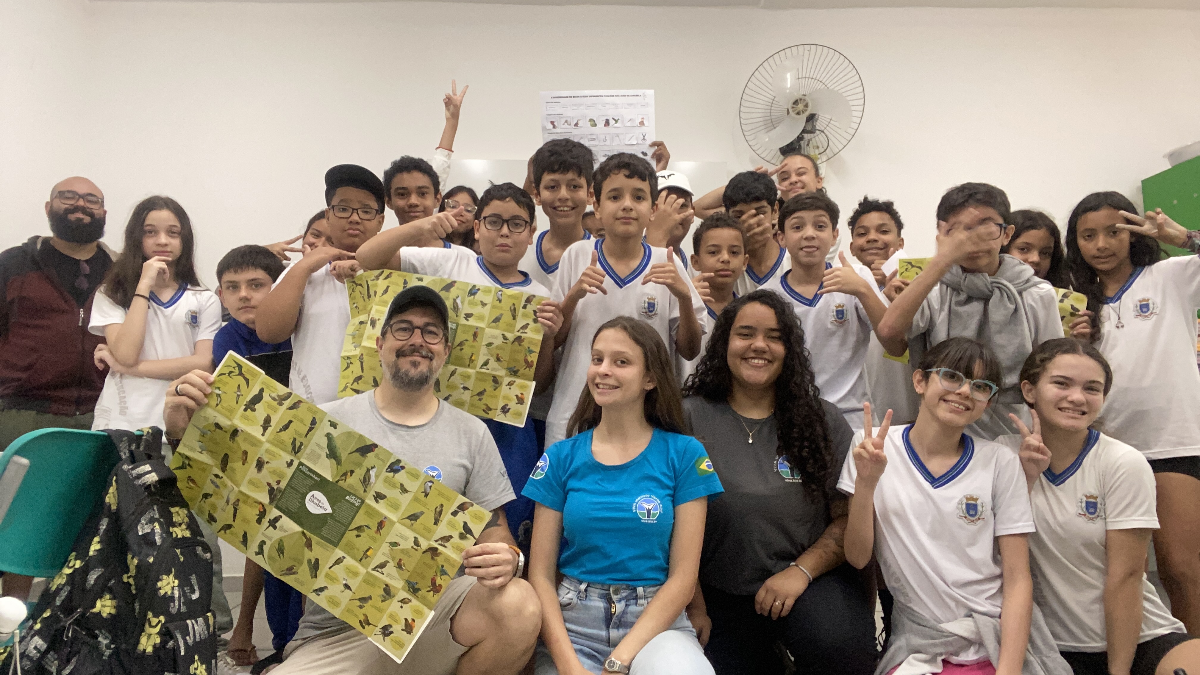 A equipe de Educação Ambiental também levou sua experiência para a escola municipal Prof.ª Mércia do Nascimento, desenvolvendo com os alunos do 6º ano a atividade “Bons de bico: diversidade e funcionalidade dos bicos das aves”. Foi um momento de interação e aprendizado, onde os estudantes puderam compreender melhor a diversidade de espécies de Ilhabela a partir da adaptação dos bicos e hábitos alimentares.